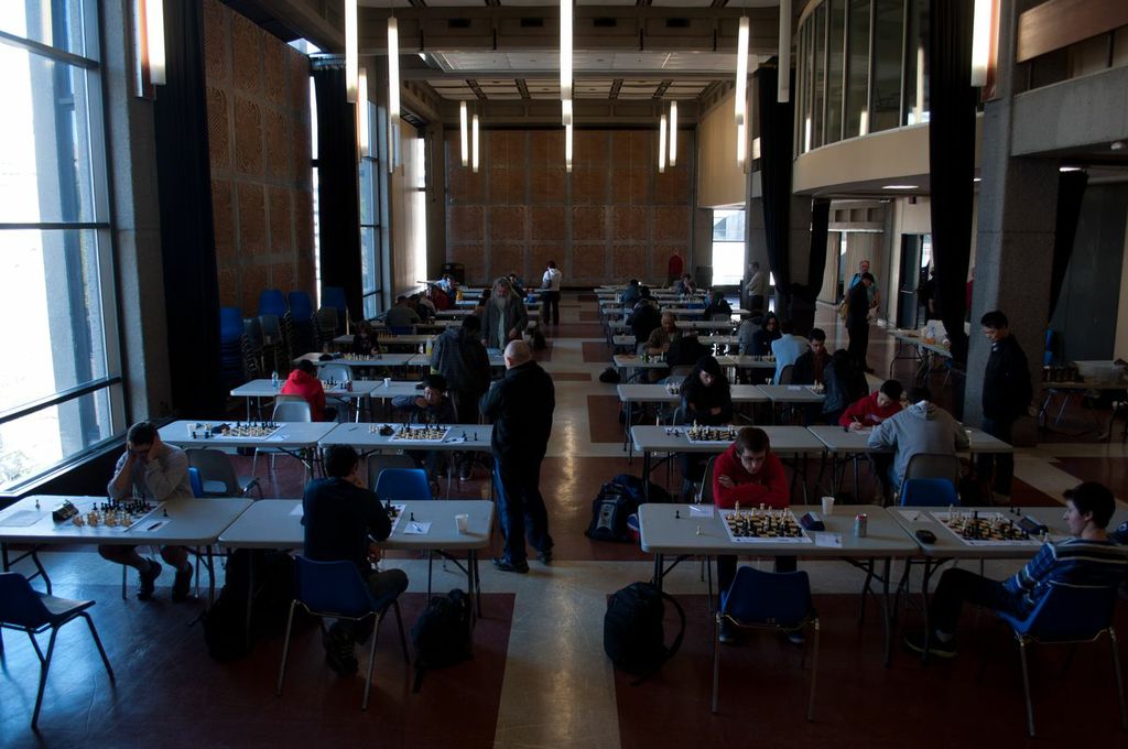 Nous avons eu la chance cette fin de semaine d’accueillir 84 joueurs d’échecs pour le Championnat ouvert de McGill. Il s’agissait de notre première année dans le Tour du Québec et, visiblement, le tournoi a provoqué un certain intérêt. La section réservée aux joueurs ayant une cote supérieure à 2000 à définitivement été une bonne idée, compte tenu du fort calibre de la section : 1 grand maître, 1 maître international, 1 maître FIDE et 7 maîtres nationaux (FQE) se sont présentés. Le grand maître Sambuev a mené le tournoi sans grande opposition, finissant premier avec 1.5 points d’avance et un résultat parfait de 5/5.
