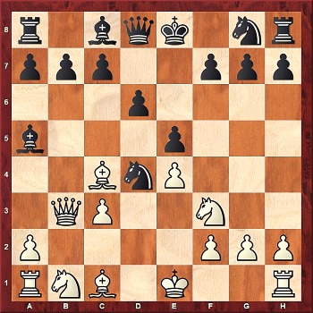 and played:} 14. e5 $5 Nxe5 15. Nxe5 Qxe5 {Robert opted to keep the diagonal