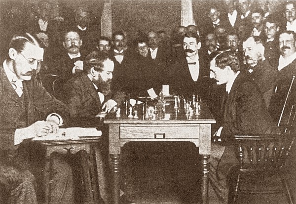 photo: Steinitz vs Lasker in Montreal, in what appears to be a position from late in game 15.