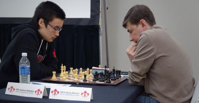 CM Joshua Doknjas defeated top seed GM Evgeny Bareev on board 1.