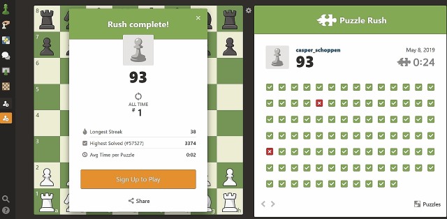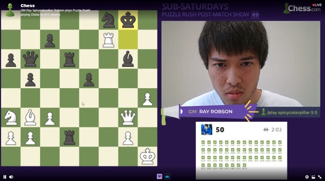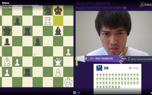 Last year, Chess.com introduced a tactics game where the goal is to solve as many puzzles as possible in 5 minutes, with the puzzles escalating in difficulty and three mistakes ends the game. Puzzle Rush was immediately tremendously popular -- inducing significant delays on the chess.com server during the first few months it was online -- and has remained so. One of the addictive attractions of Puzzle Rush are the leaders lists: both the best-of-this-hour list, as well as the all-time best list. Another is watching some of the top players streaming: it is mind-boggling how fast they "see" the positions, let alone how quickly they solve them. For a long time, the top score was held by GM Hikaru Nakamura: 55 in 5 minutes. Naka would regularly play Puzzle Rush as part of his twitch streams, and had said that he thought 60 was the best anyone could ever score. Every now and then, a virtual unknown would score 58 or more.... only to have their score removed by chess.com for suspicion of cheating.