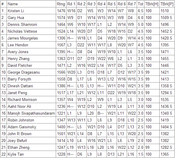 The Li sisters (Catherine -U1200 winner- and Kristen) won the family prize with 11/14