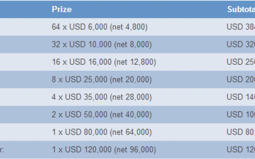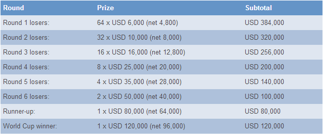 Il s'agit de l'un des tournois les plus importants de l'année, puisque ses deux finalistes se trouvent qualifiés pour les Match des Candidats. Les bourses totalisent 1,6 millions US. Les prix seront distribués un peu comme au tennis, en fonction de la dernière ronde atteinte, selon l'échelle en annexe de cet article.