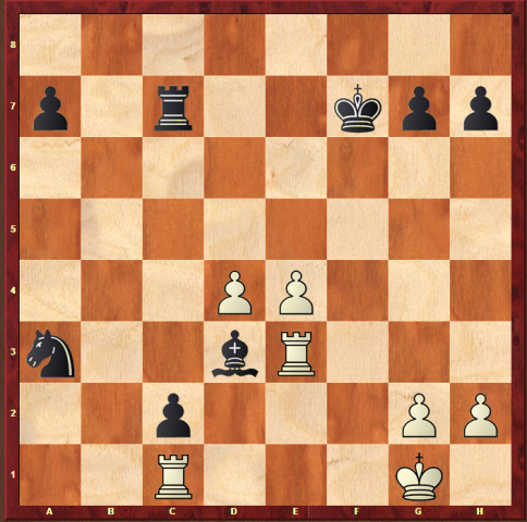 1… Rc3! (The trickier 1… Rb7, which was played in the game, actually backfires: 2. Rxd3 Rb1 3. Rf3+ and Rff1 to follow, where White has won a piece back. Sadly, in the game, White blundered back with 2. Ree1 and eventually lost.) Though it may look as if Black’s pieces are uncoordinated, his pawn on c2 makes White’s coordination even worse. After 2. Kf2, Black can continue with the simple plan of 2… Nc4 3… Rb3 and 4… Rb1, winning.
