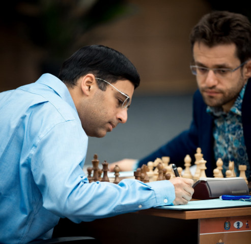 The FIDE Candidates Tournament has reached its halfpoint and there is still no clear leader. After 8 rounds, Anand and Aronian just drew and they share the lead at 5/8, half a point ahead of Kramnik. All five other players stand at 3.5/8, with only 6 rounds to go.