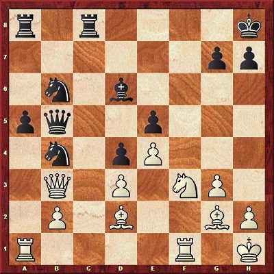 25... h6 26.Bxh6!! gxh6 27.Qe6 Bf8 28.Nxe5 only move to win: 28... Qe8 29. Rxf8+ +-. 28... Rc7 29.Ng6+ Kg7 30.Qf6+ Kh7 31.Qh8+ Kxg6 32.Rf6+ #4. 28... Bg7 29. Nf7+ Kh7 30. e5 (threatening Be4+) Qxd3 31.Qg4! is completely crushing, though 31.Qxb6 is also good enough.
