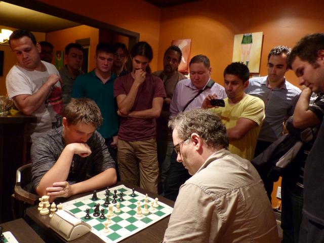 Playing at a time control (3m+2s) which didn't even exist when he last played serioulsy, Lesiège -- incredibly -- showed very little signs of rust: against a 12-player RR with an average rating of over 2400 (!), his only weak round was when he dropped one game late in the evening against the tournament's lowest rated player: David Gunapalan.