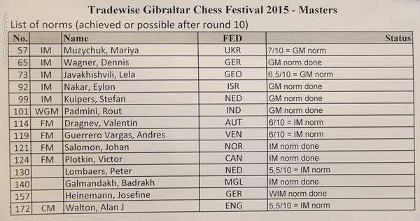 FM Victor Plotkin scored an impressive 2.5/6 against GMs and 1/2 against IMs, and secured an IM norm before the last round. His performance will also earn him 38 FIDE rating points, which will be added to the nearly 100 rating points he already won in a single year.