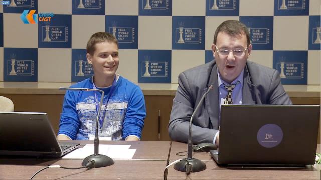 Photo shows Anton in short post-match interview with commentaor GM Emil Sutovsky, who asked him what his expectations were for the match. Anton's answer: "I booked my flight [home] for tomorrow".