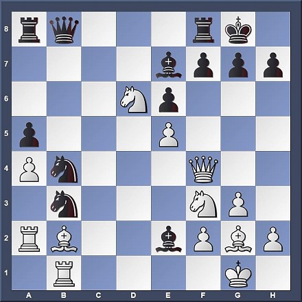 Canadian GM Anton Kovalyov was board 1 for UT Rio Grande. He lost twice, once against a brilliant technical game by the top-rated player Le Quang Liem, and once in a huge upset in the last round to IM Arthur Shen from Columbia. Our tactic comes from his first round game vs GM Yaroslav Zherebukh. Kovalyov has just played 27...Nb4 attacking the Ra2. His opponent did not find the best defence in this very complicated position. Can you?