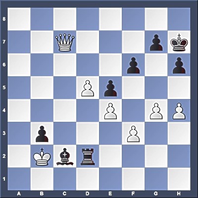 'box' and White's two queens can only stand and watch} 53. Kc2 Ba4+ 54. Kb2