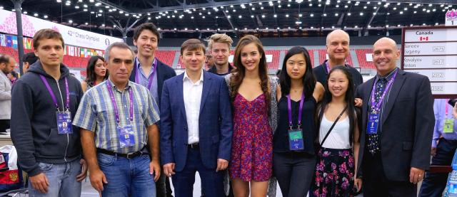 The Canadian women were not so spectacularly successful, finishing 39th. Going in ranked 40th, as a team they were playing below their rating until the last two rounds, which they won convincingly. The highlight for the Canadian women, as in Tromso 2014, was WIM Yuanling Yuan, who scored +7 =3 -0 which was the second-best percentage score on board 2. Creditable performances were turned in by both Lali Agbabishvili (+4 =3 -2), and Maili-Jade Ouellet (+5 =0 -2 on board 5) playing in her first Olympiad. Both Qiyu Zhou (+3 = 3 -4) on board 1, and Alexandra Botez (+2 =3 -4) on board 3 lost a lot of rating points.