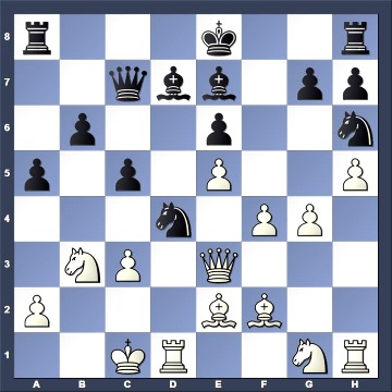 } 15. Qc2 Kb8 16. O-O-O cxd4 $1 17. cxd4 Qa5 18. Kb1 Nb4 19. Qb3 Ba4 20. Qa3