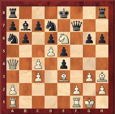 1. f3! (f4, with the same idea, was equally good.) exf3 (allowing White to capture on e4 is hopeless. 2. Rxf3! Qxf3 (Qe7 was even worse after the simple 3. Raf1.) 3. Nxc7+ Kf8 4. Qxd7 Qxe3+ 5. Kh1 Qf3+ 6. Bg2 Qf7 (necessary as Ne6+ followed by Qg7# was threatened.) 7. Rf1 Qxf1 8. Bxf1 and Black should resign before anyone sees him playing this position. Despite the level material situation, the White queen is too active: she cuts off the Black king on the back rank, creating numerous mating threats and discoordinating the rooks. After 8. … Nxc7 9. Qxc7, White can simply use his last remaining minor piece in harmony with the queen to creative decisive mating threats e.g. Bd3 Bg6 or Bh3 Be6.