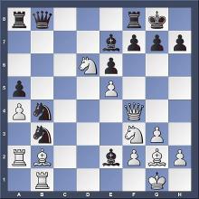 This week's Canadian Tactic comes from this week's Final Four. Black's Ns are dancing up a storm, and his last move 27...Nb4 sets up another threat.