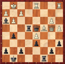White’s previous move, 1. exd5, was a mistake—with the simple 1. Be2, he could have kept a large advantage against Black’s forlorn king. What must Black do to seize a decisive advantage?